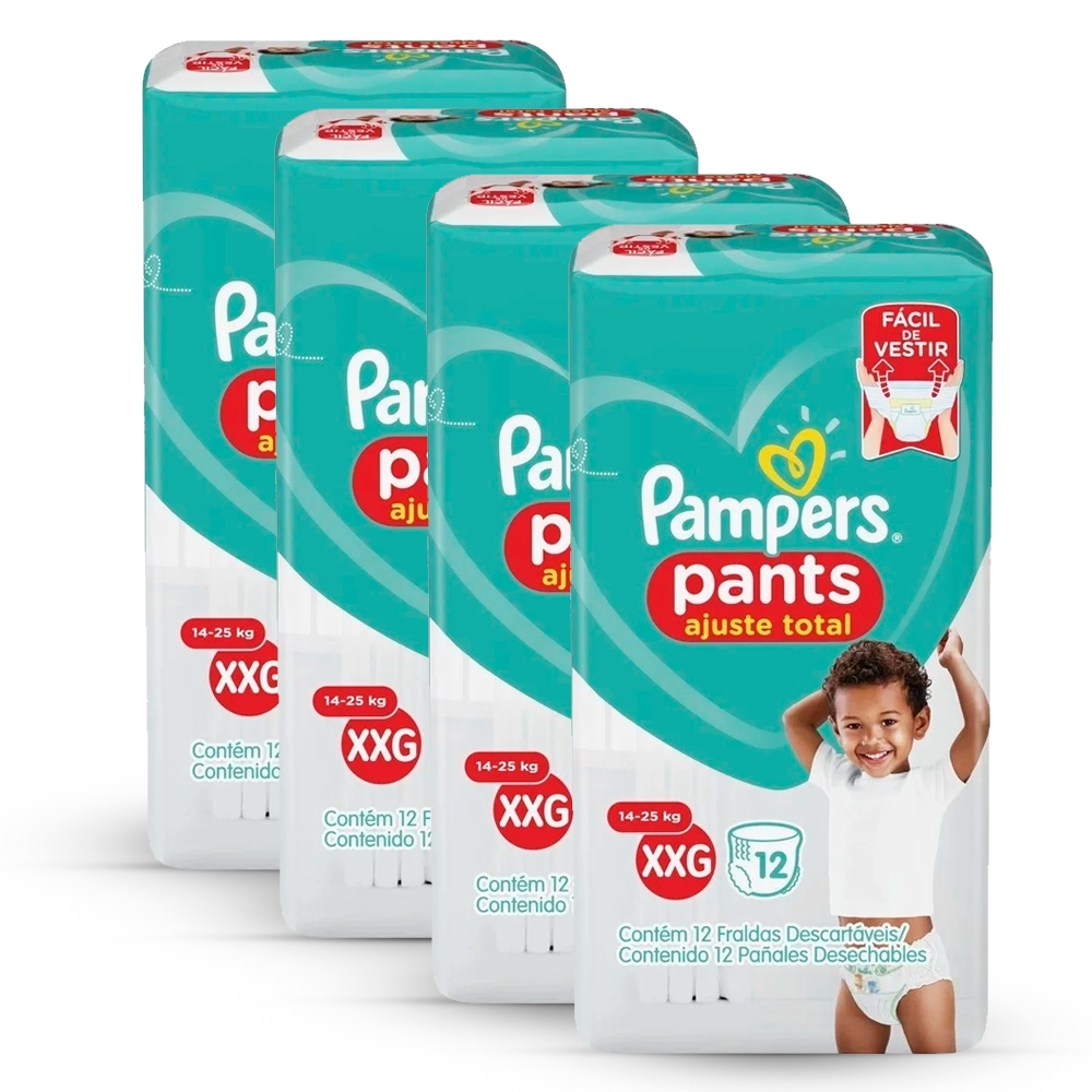 Kit composto por 4 Fraldas Pampers Pants Ajuste Total XXG – 48 unidades cada